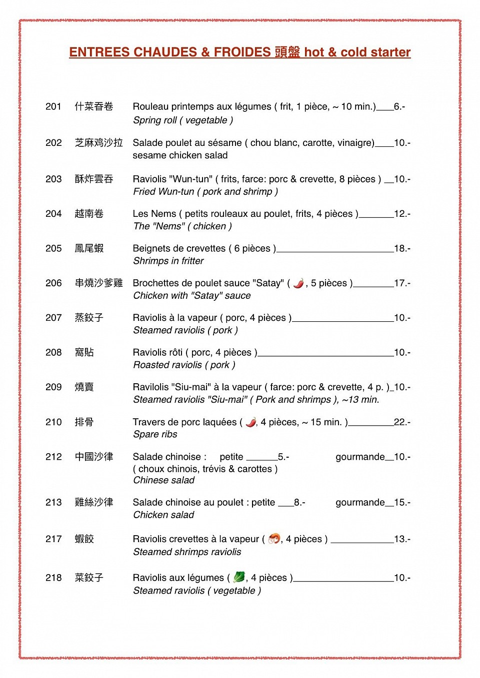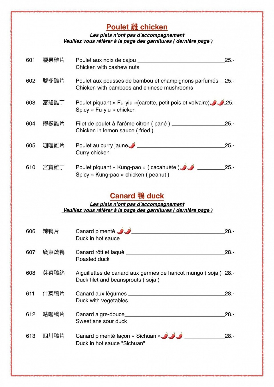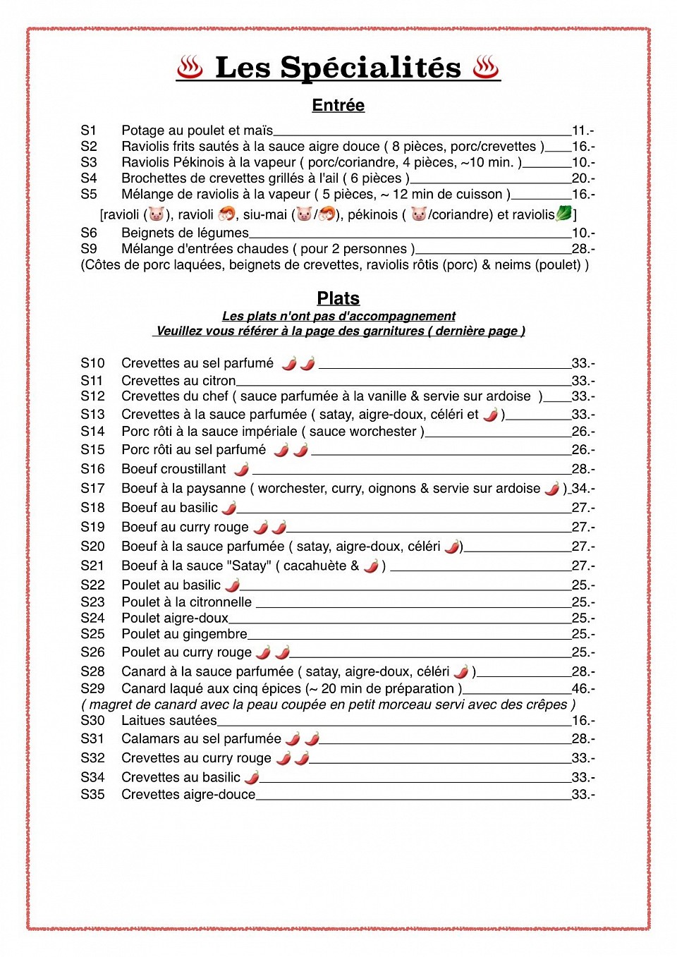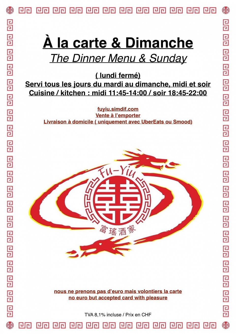 Tous nos plats et menus sont à l'emporter ( sauf la fondue chinoise ).