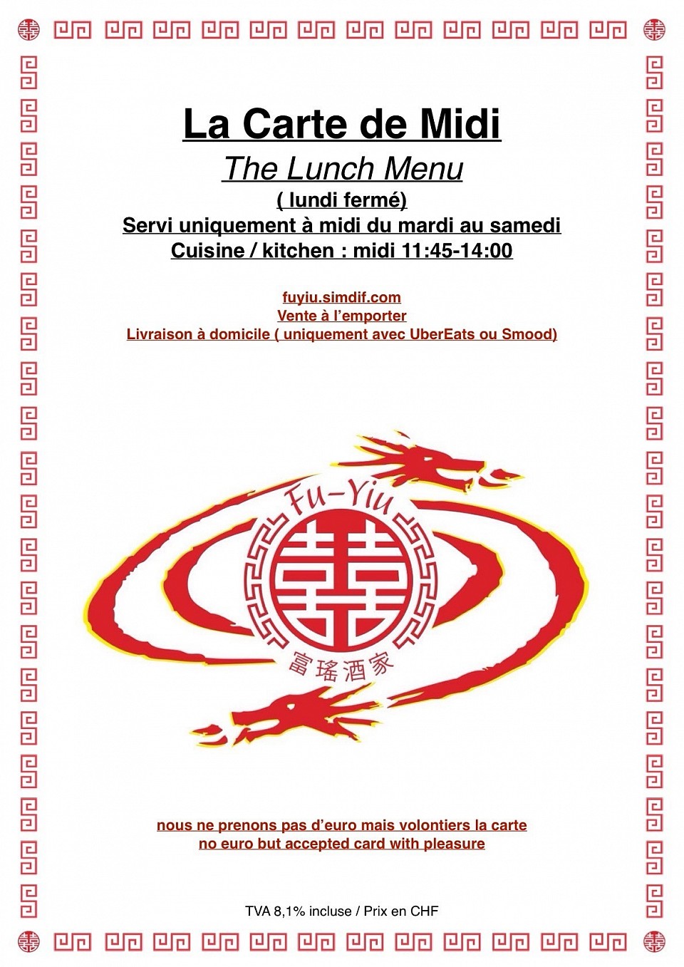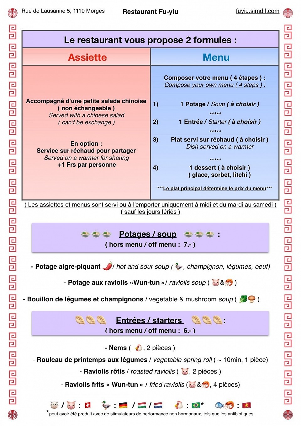 Les assiettes et menussont servis uniquement à midi et du mardi au samedi ( sauf jours fériés )
